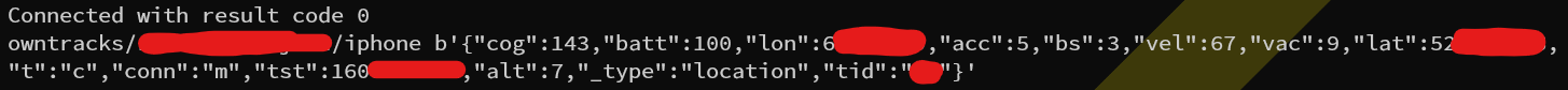 So lets take one MQTT service as an example. Its fairly easy to make a connection. A simple Python script allows you to connect to an MQTT service without credentials. After connecting to this specific service, I was a little bit surprised how quickly I could track someone down. After connecting to the server, I was able to determine the following: