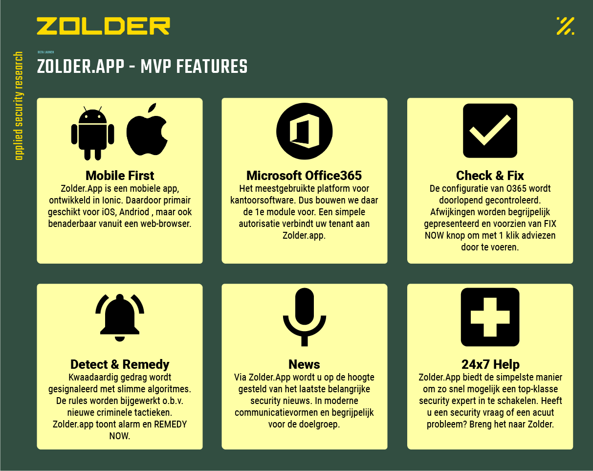 Het is belangrijk dat de verschillende expertises met elkaar samenwerken om zo tot een functioneel én veilige oplossing te komen. Ik vind het dan ook fijn te merken dat we als Zolder al best regelmatig gevraagd worden om een security rol in te nemen in het ontwikkelingsproces van digitale producten van onze klanten.