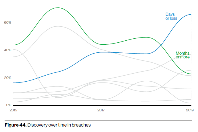 Veel organisaties monitoren niet actief op eventueel kwaadaardig gedrag op het netwerk. Of er vindt wel signalering plaats, maar volgen de alarmen niet effectief op (kijken er nooit naar of met onvoldoende kennis). Dit veroorzaakt het probleem dat een organisatie niet door heeft dat ze gecompromitteerd is, of wordt. Volgens het laatste DBIR 2020 rapport duurt het bij meer dan 20% van de aanvallen nog steeds één maand of meer voordat deze opgemerkt wordt.