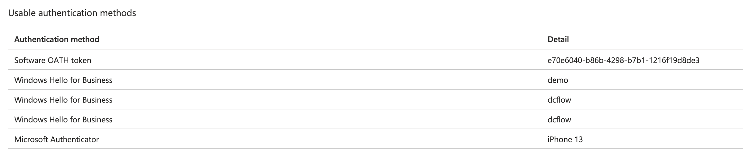 From a user perspective its quite difficult to detect that a new WHFB key was added. Its not shown in the My Account page that lists the other authentication methods. The newly added device will show up here, but its not clear an auth method is bound ot it. Administrators can see the WHFB keys in EntraID.
