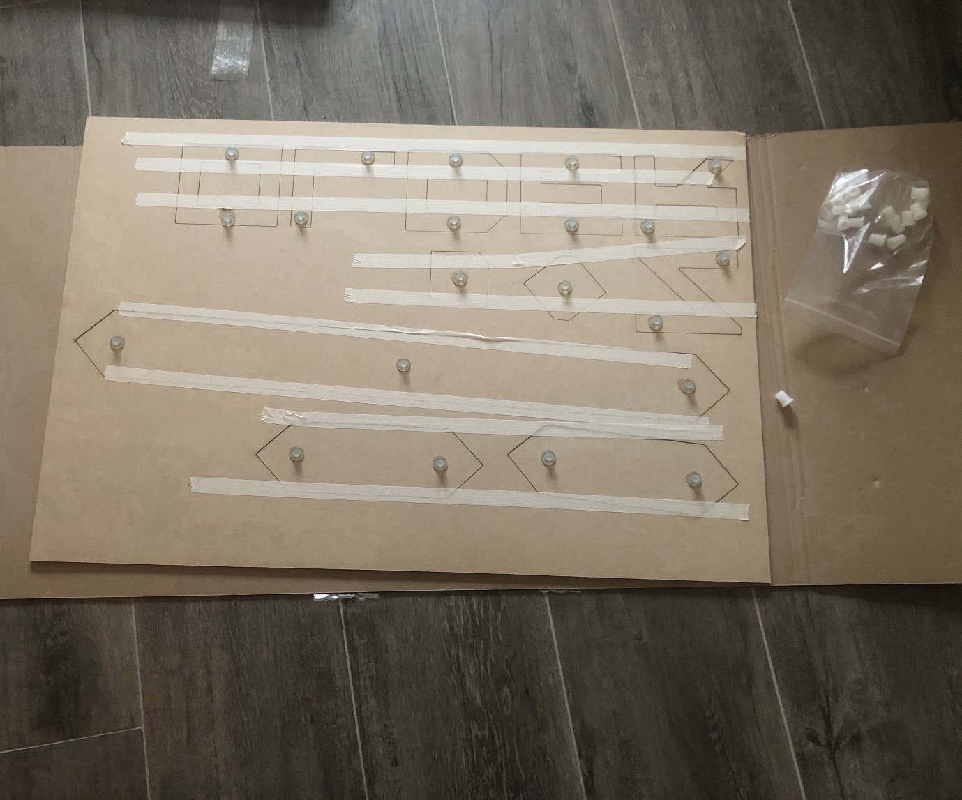 The last step was to install the microcontroller and led strip on the board. The challenge was not to break the led strip connection during installation (of course, in the end one connection broke nonetheless 😊). However, after creating the required holes the board looked like this: