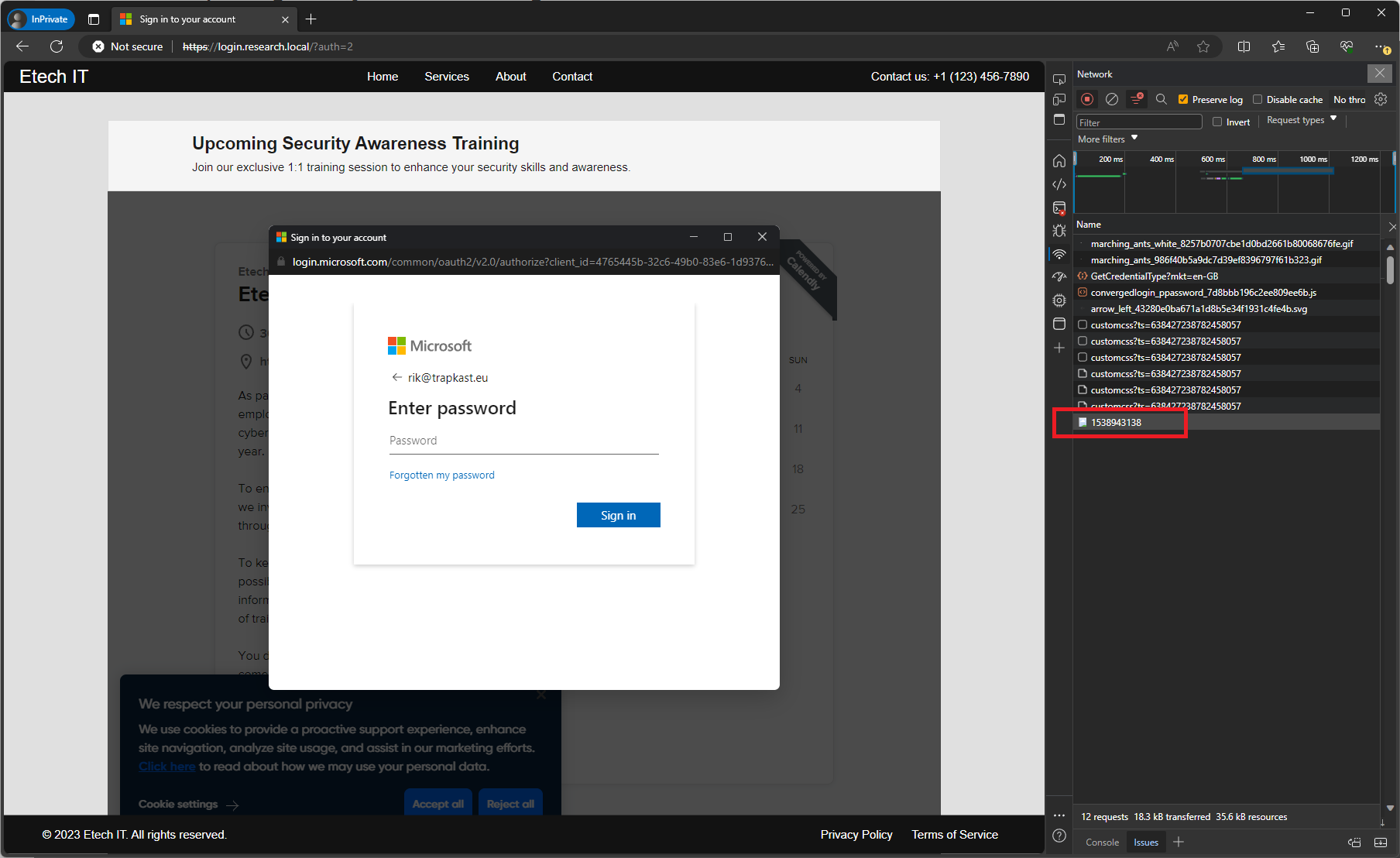 We ran a test running a new BITB phishing approach. With a Browser-in-the-Browser phishing attack, a Microsoft login page is embedded within another page, imitating a complete browser window. The following GIF shows the concept really well: